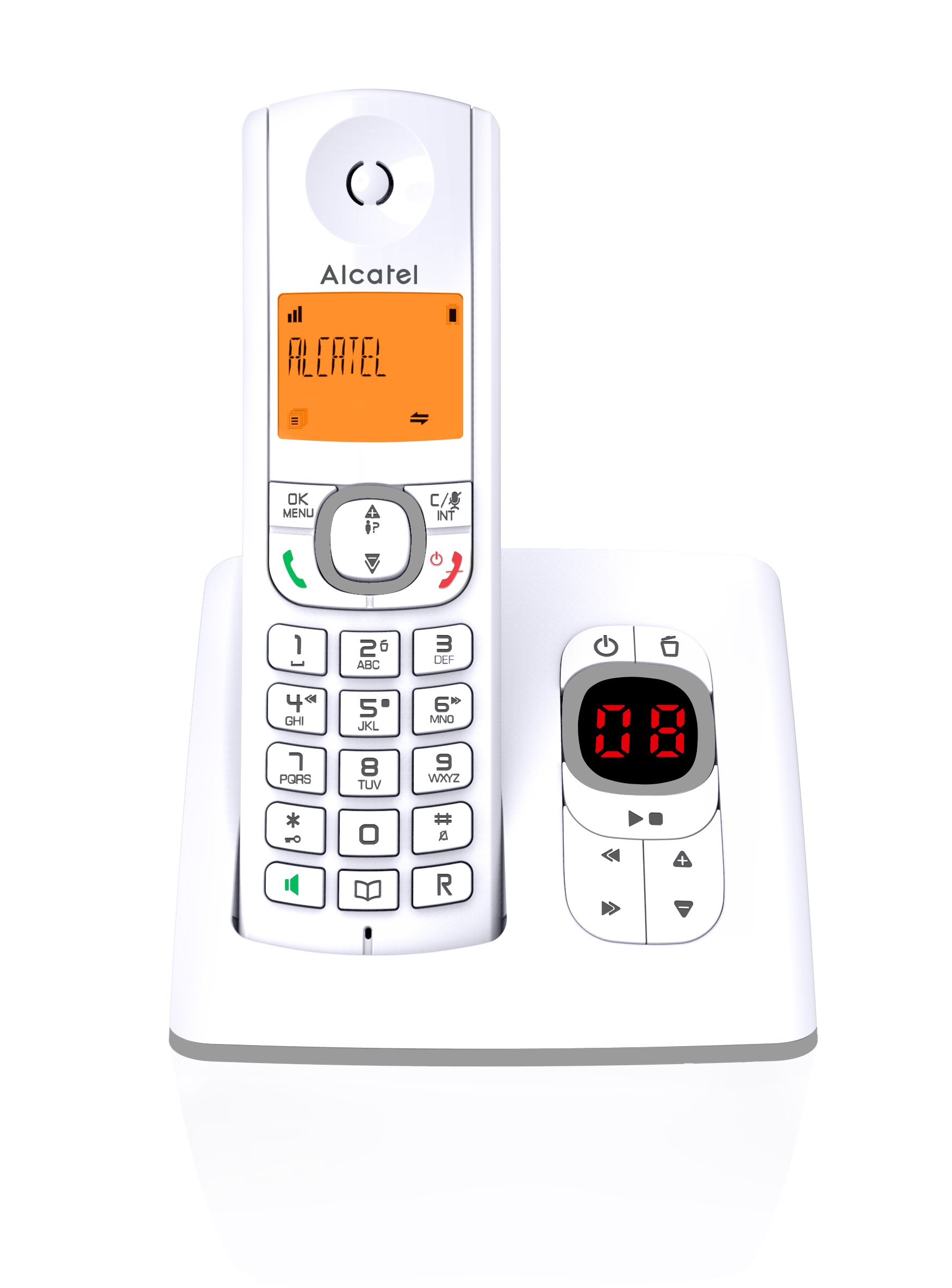 Arf ce chiffre est plus fort Ego vois approprié tonalité message ! J'héemploi avec celui-ci là maintenant en tenant lave vaiselle : Alcatel F530 Voice - Téléphone sans fil DECT aux coloris contemporains, Répondeur intégré, Mains libres, Ecran rétroéclairé, Sonneries VIP, 10 mélodies d'appel - Blanc/Gris