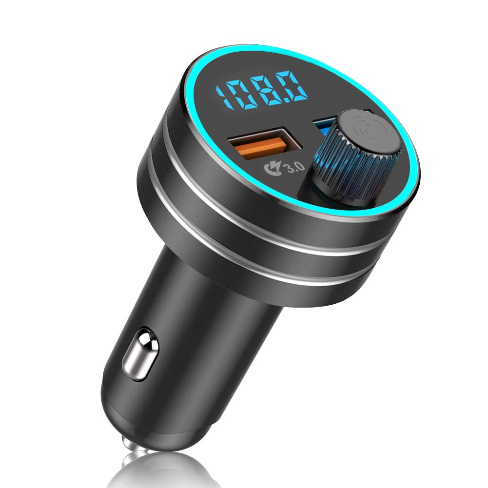Transmetteur FM Bluetooth 5.0 Adaptateur Radio Lecteur MP3 Dual USB Ports QC3.0 et 5V/1A Chargeur Voiture Appel Main Libre Affichage à LED Clé USB pour iOS et Android