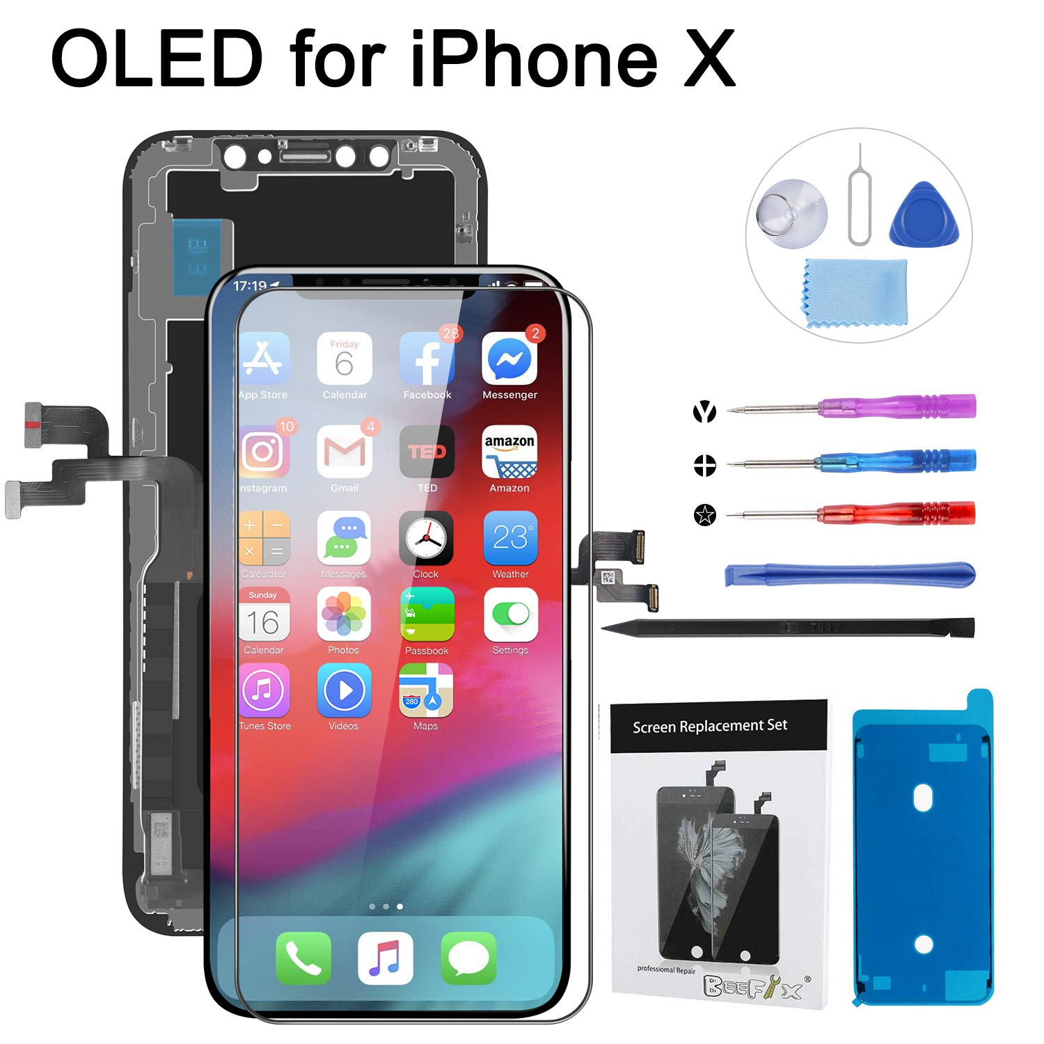 Arf ce chiffre est plus fort Ego vois approprié tonalité message ! J'héemploi avec celui-ci là maintenant en tenant lave vaiselle : Beefix Ecran pour iPhone X Noir 5.8" Pouces - OLED Écran Tactile Digitizer Assembly avec Kit De Réparation Complet et Protecteur D'écran
